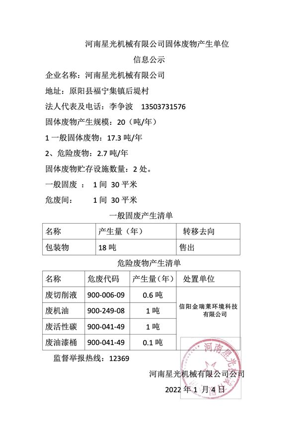 固體廢物信息公示